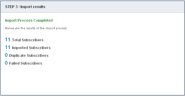 Once the options are populated click on the "Next" button to proceed to the import results step. The result screen will give you the details about the import process completion.