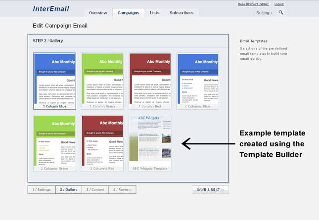 Templates you have created using the Template Builder will also be available for selection in the Template Gallery during the campaign creation process or when editing an existing campaign.