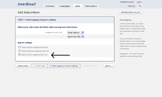 The hard bounced subscribers are automatically added to the suppression list whenever they are detected. You can also configure the unsubscription behaviors which will allow you to add the un-subscribed members to the suppression list of a particular mailing lust so that they do not receive any further communication.