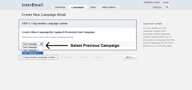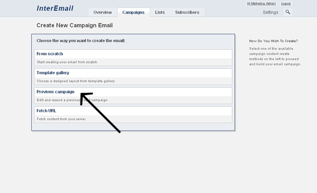 The Cloud Based Email Marketing system provides several methods to create new campaigns. This section details how to use a Previously Sent Campaign to create a new campaign. Other methods of creating and sending new campaigns are covered under Creating New Campaigns.