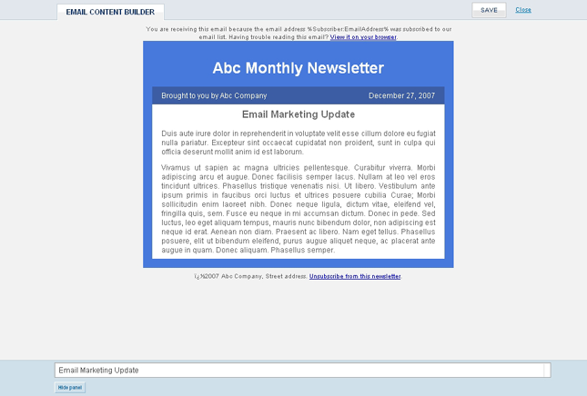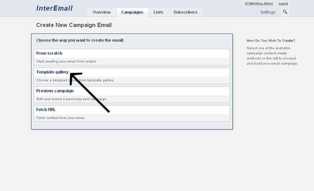 The Cloud Based Email Marketing system provides several methods to create new campaigns. This section details how to use the The Template Gallery to create a new campaign. Other methods of creating and sending new campaigns are covered under Creating New Campaigns.