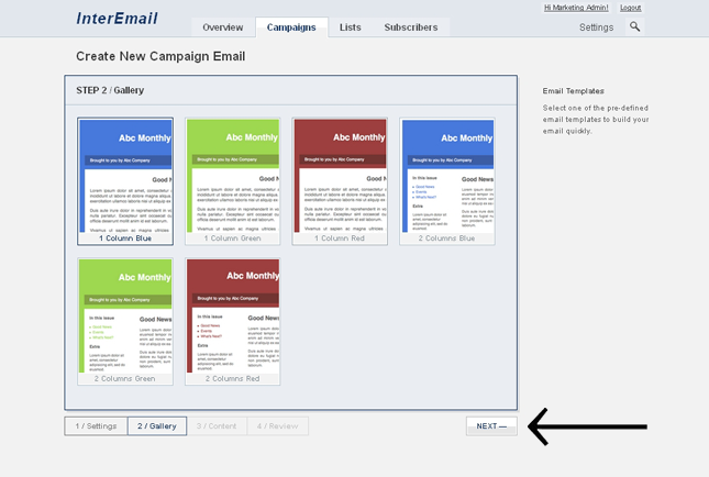 Campaign Email Creation Step 2 / Template Selection